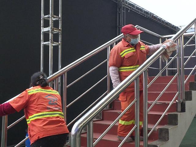 场内场外,环卫工人的身影也在不停忙碌。记者黄敏 摄