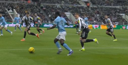 第83分钟,霍尔与里科-刘易斯发生冲突,紧接着后者因拖延时间染黄